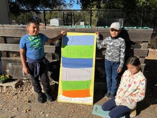 - Hands-on experiment: It's powerful for students to understand that food comes from living things, therefore it can decompose, and seeing how food decomposes (and how plastics, etc... don't decompose) helps cement these concepts in their mind. To help students visualize this beyond the backyard compost bin, there is a great experiment in Life Lab's activity guide "The Growing Classroom" called You Look Different From The Last Time I Saw You, that has students observe and compare decomposition of various items found in the cafeteria and school lunch (plastic fork, napkin, pizza crust, pear, etc...). Over time, students discover that the plastic items don't decompose within the time frame of the experiment, but the food items do. Maybe each classroom could set up an experiment to observe and collect data? If you are composting food scraps in your school garden bin, of course it will be important to help students discern meat and dairy items from fruits and vegetables so that you're only collecting fruits and vegetables for the bin. Our schools have a composting service that picks up the food scraps, so we put all food and napkins in the bin.