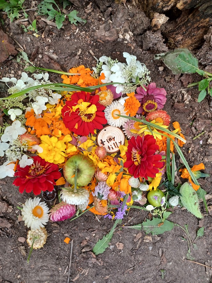Through a series of unfortunate events, the campers ended up mourning the death of a small toad they named Tilly. As a group, they decided to hold a small ceremony for Tilly. We had a seemingly endless supply of marigold flowers and petals, so they took it upon themselves to harvest the marigolds and other flowers to create an altar and a marigold trail through the garden to honor Tilly. They each walked up the marigold trail and stopped at the altar to say a few sweet words to Tilly before saying goodbye. This moment was impactful not only because this loss brought them all together, but incorporated this very important flower in their ceremony. It would not have been the same without this meaningful flower!